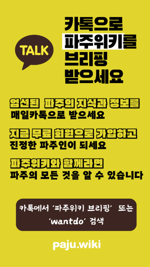 파주위키가 매일 매일 쏱아지는 파주의 지식과 정보를 엄선해서 카톡으로 브리핑합니다.