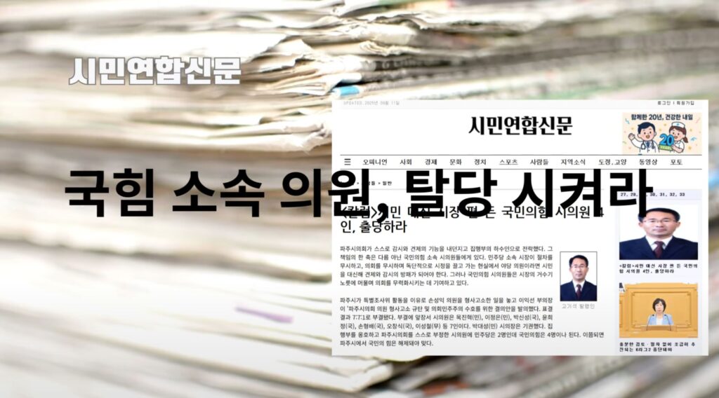이 영상을 통해 파주시의 복잡한 정치적 갈등과 그 속에 숨겨진 진짜 민낯을 파헤쳐보라. 과연 누구의 말이 진실이며, 누가 파주 시민의 이익을 대변하고 있는지 직접 판단해볼 기회가 될 것이다.