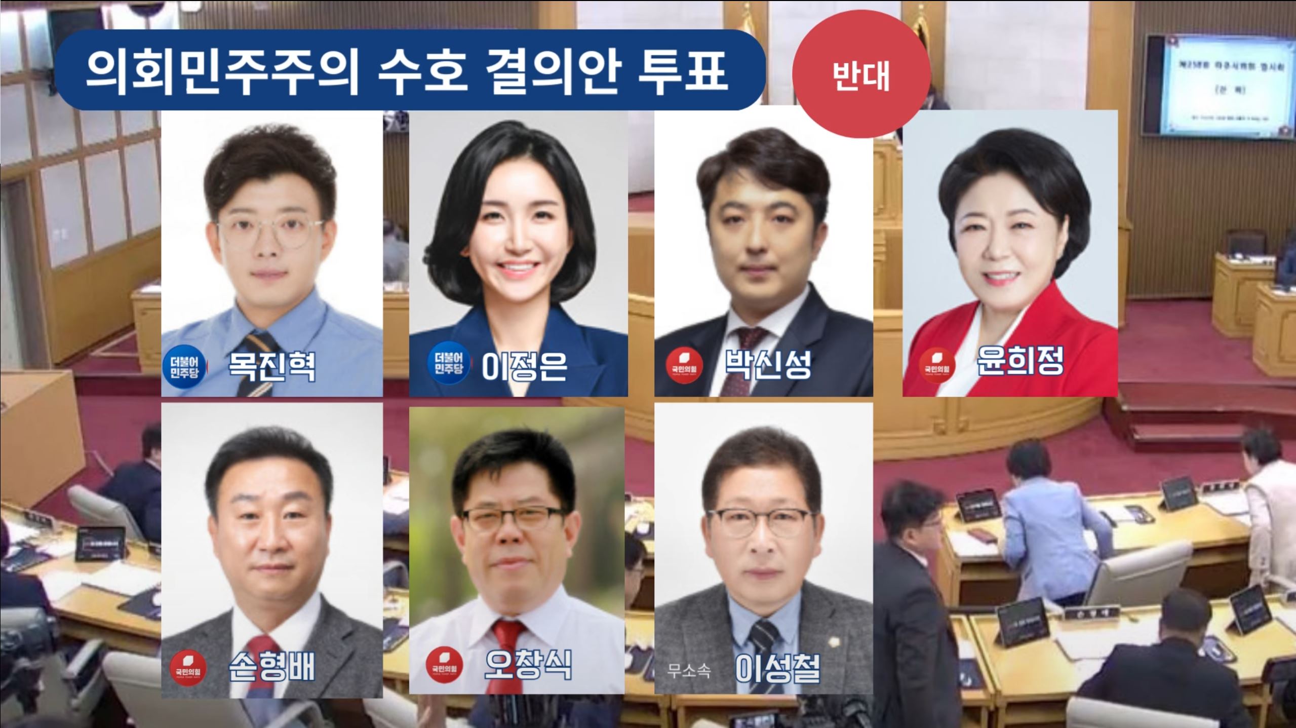 특히, ‘의회 민주주의 수호 결의안’에 반대한 의원들의 실명과 얼굴을 공개하며 민주당과 국민의힘이 아닌 제3당이 파주시를 좌지우지한다고 했다.