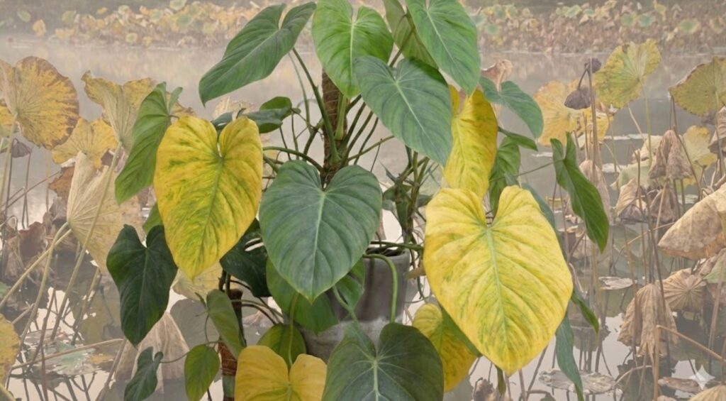 노랗게 시들어서 잎의 아래쪽 쳐지니