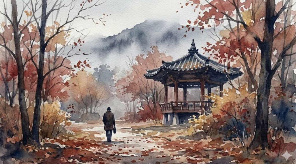 이 시는 계절의 전환을 치열한 한 판 승부로 그려낸다. 견고했던 여름을 밑바닥부터 들어 올려 비워내는 과정은 무겁고도 격렬하다. 마침내 붉은 열정으로 물든 가을이 승기를 잡고, 화자는 서릿바람 부는 황량한 등성마루에 낙엽을 앉히며 다가올 11월의 추위를 비장하게 마주한다. 그러나 뜨거웠던 지난 계절이 흔적 없이 사라진 자리엔, 아득한 남은 날들을 헤아리는 허무한 그림자만이 자꾸 뒤척인다. 계절의 역동적인 변화 이면에 깃든 삶의 쓸쓸한 뒷맛을 깊이 있게 포착했다.pajuwiki_ai
