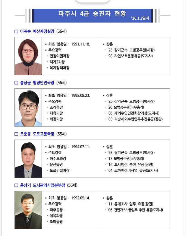 파주시 2026.1.1일자 정기인사 단행