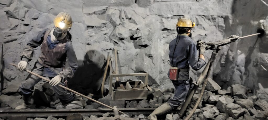 박물관 3층에서 엘리베이터를 타고 1층까지 내려가면 갱도 깊이 700여 미터 체험 공간이다. 어둡고 눅눅한 지하 공간에는 광부들의 채광 모습과 불규칙하고 경사진 탄층에서 석탄을 옮기는 장면이 재현되어 있다. 막장에 안전한 인도를 만들기 위해 세워진 버팀목, 채광하러 가는 길에도 갱목을 등에 지고 운반하는 모습은 그들의 고단한 삶을 짐작하게 한다. 갱 안의 간이 사무실은 밥을 먹거나 작업을 관리 하며, 지상과 연락할 수 있는 통신 시설과 가벼운 부상을 치료할 수 있는 구급약이 비치되었다. 한번 들어가면 온종일 탄가루를 마시며 목숨 건 극한의 현장에서 석탄을 캐는 과정을 보고서야 광부들이 위험을 무릅쓰고 일한 덕분에 우리가 따뜻한 겨울을 보낼 수 있었다는 사실을 깨닫는다.