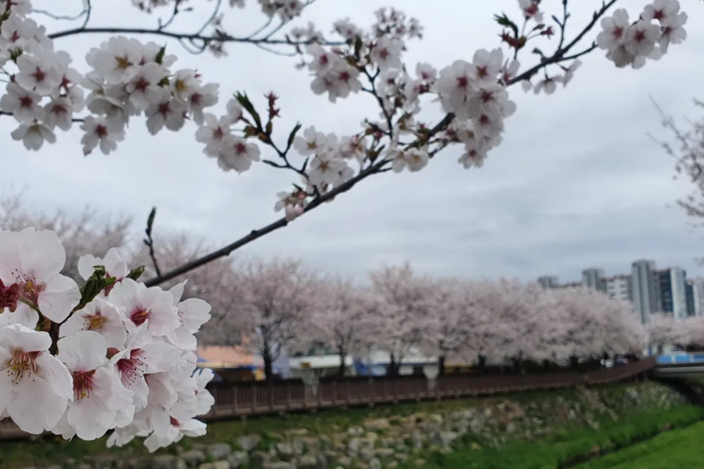 - 낮: 푸른 하천과 계절마다 옷을 갈아입는 꽃길을 보며 즐기는 여유로운 오찬.