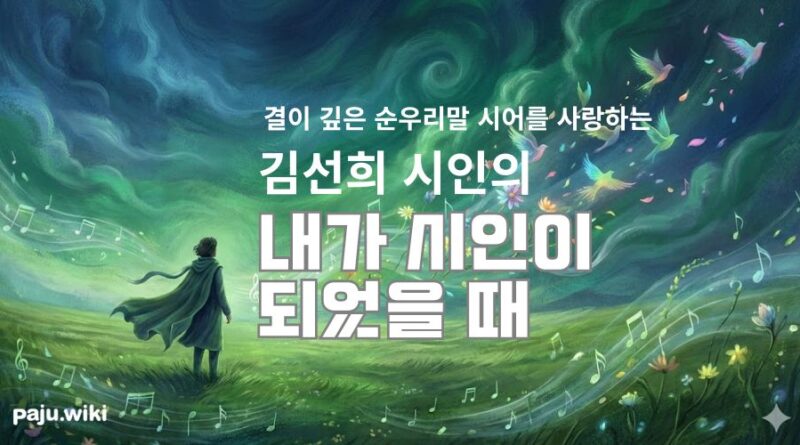 Best-story파주人시선 내가 시인이 되었을 때 -김선희 2025-12-05 pajuwiki 마종기의 “내가 시인이 되었을 때”를 읽고 내가 시인이었을 때 그러니까 내가 초록이었을 때 가는 곳마다 꽃향기가 넘치고 바람은 빈 들판을 자세히 보기