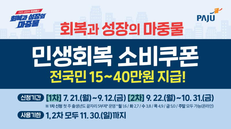 ‘민생회복 소비쿠폰’이 오는 21일부터 2025.6.18일 거주 기준으로 지급된다. 1차 지급 대상은 민생회복 소비쿠폰 지급계획의 발표일 전날인 2025년 6월 18일을 기준으로
