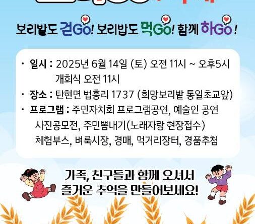 탄현면 주민자치회가 주민화합을 위한 ‘쓰리Go!축제’를 개최한다고 발표했다. 이번 축제는 2025년 6월 14일 토요일 오전 11시부터 오후 5시까지 탄현면 법흥리 1737번지