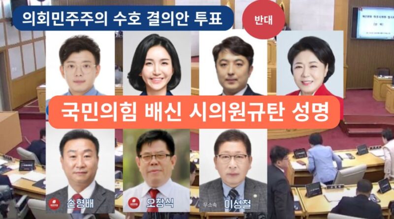 2025.9.13일 김일철 국민의힘 파주시을 청년위원회 위원장과 청년위원 일동은 파주시의회에서 ‘의회민주주의 수호 결의안’을 반대한 국민의힘 소속의원 4명에 대하여 규탄 성명서를 페이스북에