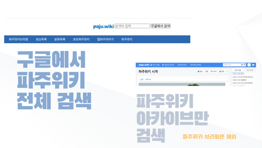 기존에 운영되던 파주위키에서의 검색은 기존처럼 아카이브 결과만을 제공하고 파주위키브리핑 결과는 포함되어 있지 않습니다.