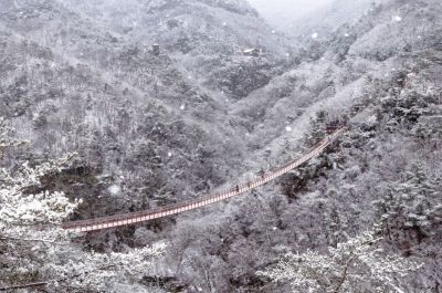 평상시 감악산 등산객들이 많이 이용하는 출렁다리 부근은 빨강색 현수교 출렁다리와 법륜사와 어우러지는 겨울철 설경이 장관이다. 출렁다리를 지나 정상으로 가는 길에는 얼음으로 덮인 높이 20m 운계폭포도 볼 수 있다.
