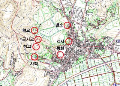 관아지 건축물은 1842년 7개소가 있었으나 1899년에는 49개 건축물로 늘어 났다. 관아지 건축물이 늘어 난 것은 철종대(1849∼1863) 이후 유숙자가 늘어나면서 신축 또는 증축한 것으로 보인다.