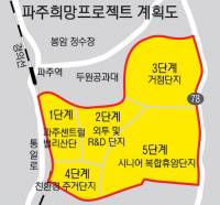 파주희망프로젝트는 전체 면적 3,749,000㎡(1,136천평)으로 사업단지 개발을 5개구역으로 나누어 단계별로 추진하기로 결정했다.