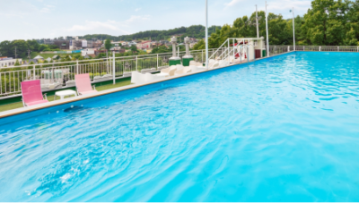 1호점과 온수풀 구조가 다르며, 수영장과 객실을 잇는 위치에 샤워실이 위치해있다.